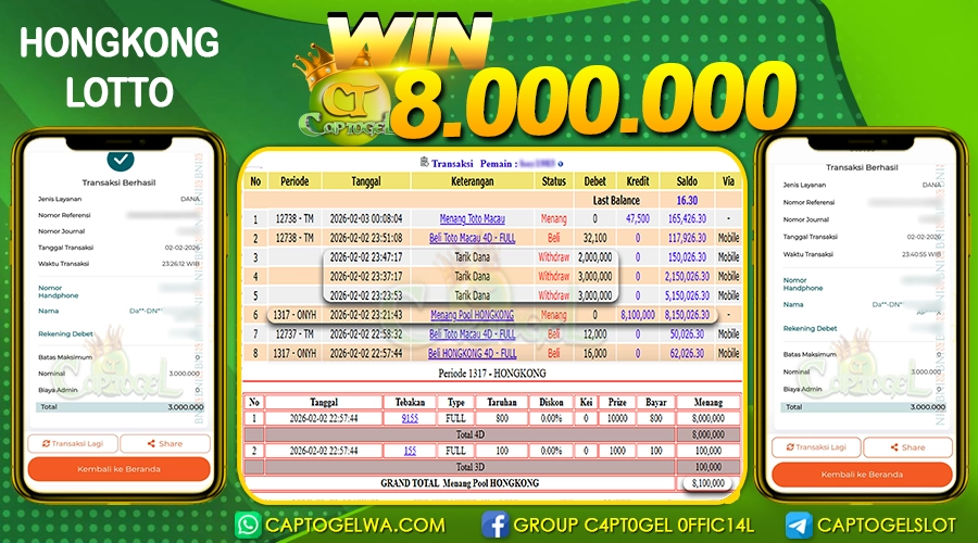 Read moreCAPTOGEL – Selamat Kepada Pemenang User ID: ju***i dalam permainan HONGKONG LOTTO sebesar Rp 8.000.000 02 FEBRUARI 2026 – bermain di situs game online terpercaya […]