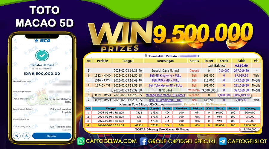 Read moreCAPTOGEL – Selamat Kepada Pemenang User ID: wi***a dalam permainan TOTO MACAO 5D sebesar Rp 9.500.000 03 FEBRUARI 2026 – bermain di situs game online […]