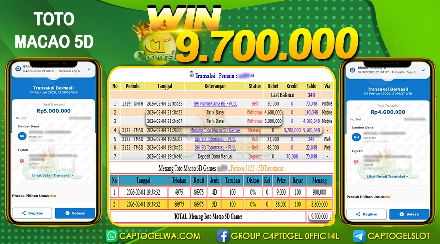 Read moreCAPTOGEL – Selamat Kepada Pemenang User ID: mf***h dalam permainan TOTO MACAO 5D sebesar Rp 9.700.000 04 FEBRUARI 2026 – bermain di situs game online […]