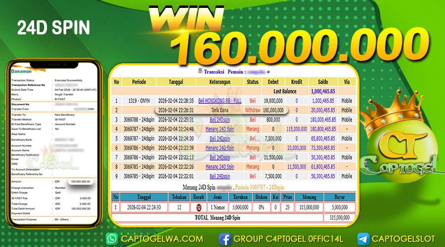 Read moreCAPTOGEL – Selamat Kepada Pemenang User ID: ce***a dalam permainan 24D SPIN sebesar Rp 160.000.000 04 FEBRUARI 2026 – bermain di situs game online terpercaya […]