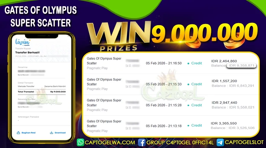 Read moreCAPTOGEL – Selamat Kepada Pemenang User ID: mo***k dalam permainan GATES OF OLYMPUS SUPER SCATTER sebesar Rp 9.000.000 05 FEBRUARI 2026 – bermain di situs […]