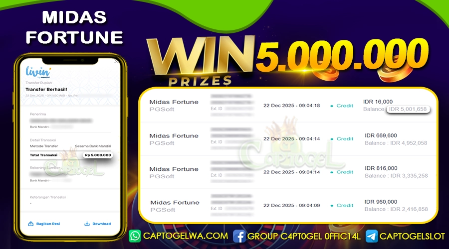 Read moreCAPTOGEL – Selamat Kepada Pemenang User ID: ko2*** dalam permainan MIDAS FORTUNE sebesar Rp 5.000.000 22 DESEMBER 2025 – bermain di situs game online terpercaya […]