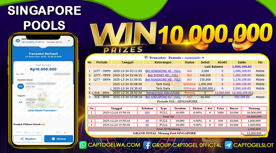 Read moreCAPTOGEL – Selamat Kepada Pemenang User ID: mu1*** dalam permainan SINGAPORE POOLS sebesar Rp 10.000.000 24 DESEMBER 2025 – bermain di situs game online terpercaya […]