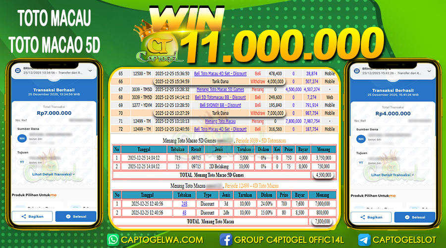Read moreCAPTOGEL – Selamat Kepada Pemenang User ID: luv*** dalam permainan TOTO MACAO 5D sebesar Rp 11.000.000 25 DESEMBER 2025 – bermain di situs game online […]