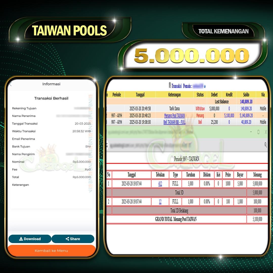 Read moreCAPTOGEL – Selamat Kepada Pemenang User ID: anm*** TAIWAN POOLS 5.000.000 Juta 20 Maret 2025 – bermain di situs game online terpercaya yang telah terbukti dengan […]