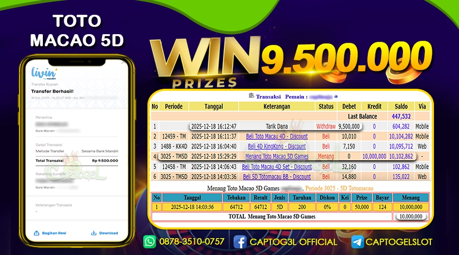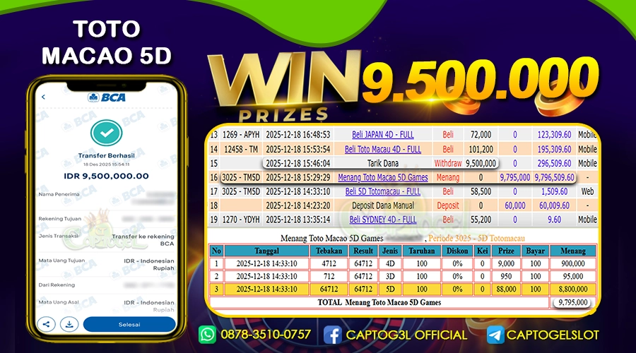 Read moreCAPTOGEL – Selamat Kepada Pemenang User ID: peb*** dalam permainan TOTO MACAO 5D sebesar Rp 9.500.000 18 DESEMBER 2025 – bermain di situs game online […]