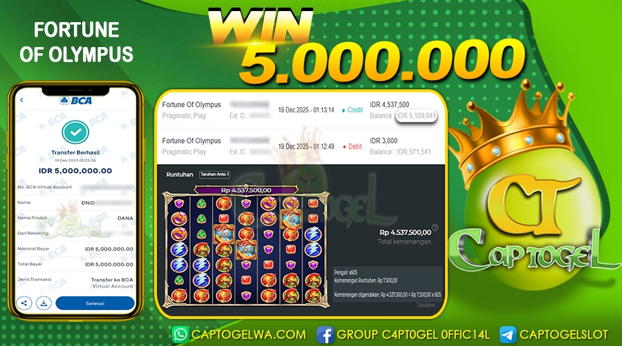 Read moreCAPTOGEL – Selamat Kepada Pemenang User ID: ge1*** dalam permainan FORTUNE OF OLYMPUS sebesar Rp 5.000.000 19 DESEMBER 2025 – bermain di situs game online […]