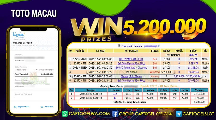Read moreCAPTOGEL – Selamat Kepada Pemenang User ID: reb*** dalam permainan TOTO MACAU sebesar Rp 5.200.000 21 DESEMBER 2025 – bermain di situs game online terpercaya […]