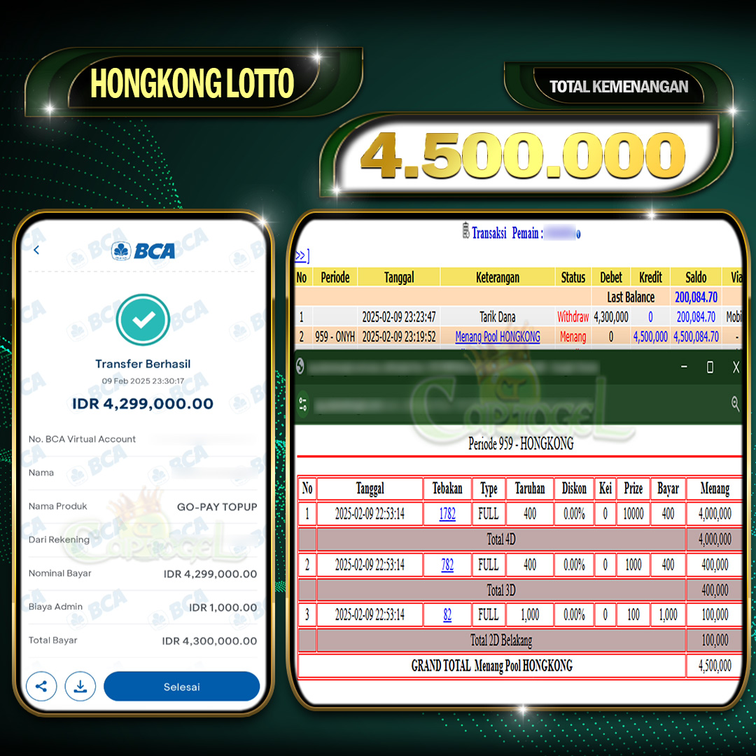 Read moreCAPTOGEL – Selamat Kepada Pemenang User ID: sas*** HONGKONG LOTTO 4.500.000 Juta 09 Februari 2025 – bermain di situs game online terpercaya yang telah terbukti […]