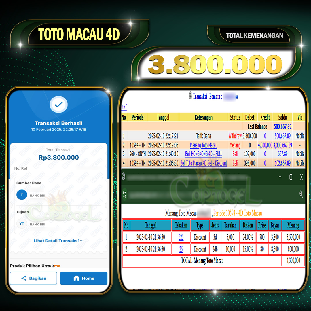 Read moreCAPTOGEL – Selamat Kepada Pemenang User ID: ud*** MAHJONG BONANZA 6.000.000 Juta 09 Februari 2025 – bermain di situs game online terpercaya yang telah terbukti dengan […]