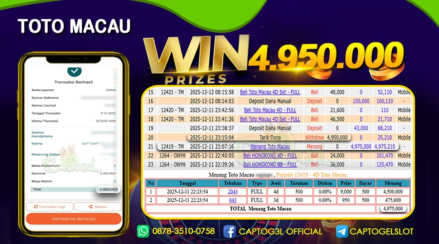 Read moreCAPTOGEL – Selamat Kepada Pemenang User ID: fox*** dalam permainan TOTO MACAU sebesar Rp 4.950.000 11 DESEMBER 2025 – bermain di situs game online terpercaya yang […]