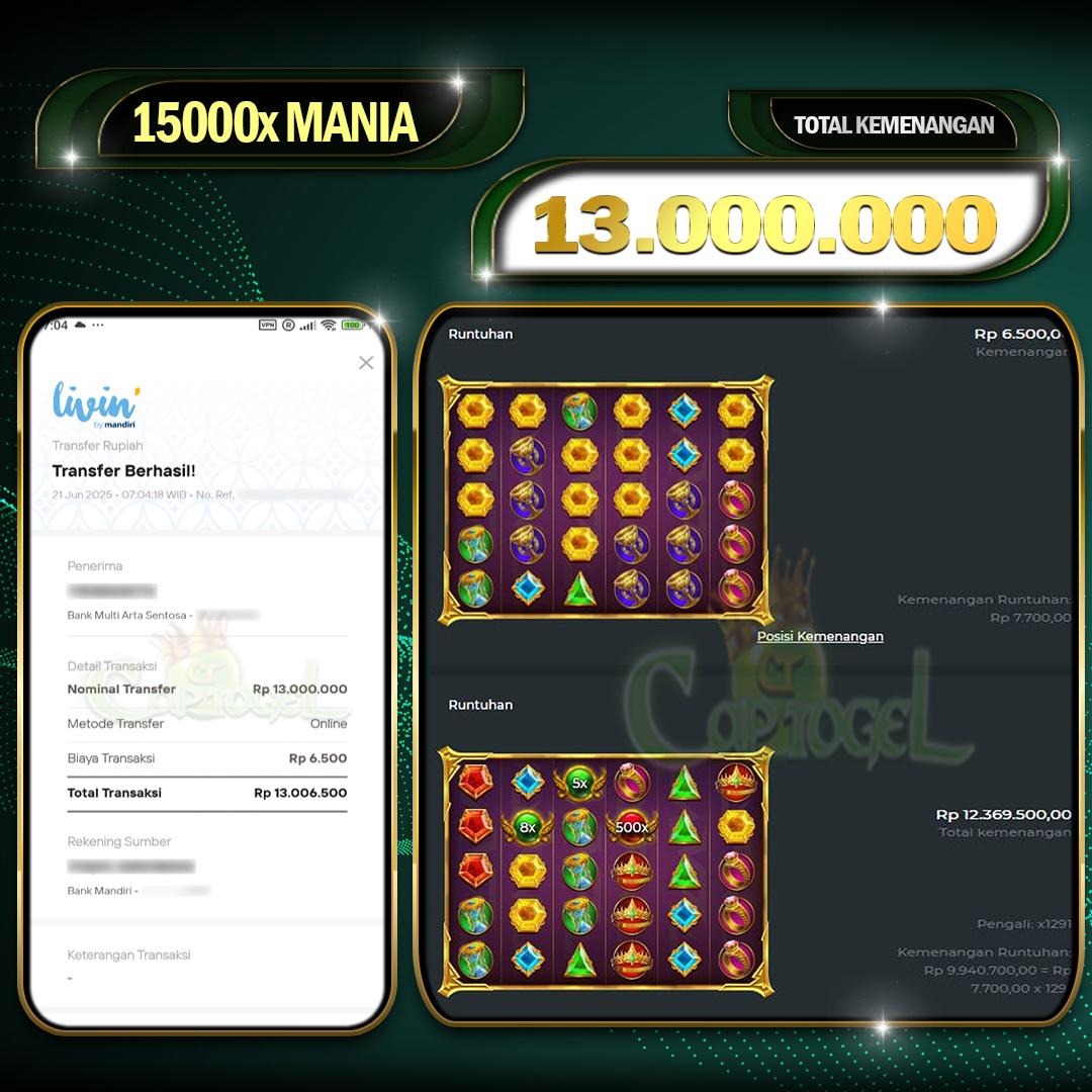 CAPTOGEL – Selamat Kepada Pemenang User ID: yao*** 15000X MANIA 13.000.000 Juta 21 JUNI 2025 – bermain di situs game online terpercaya yang telah terbukti dengan […]