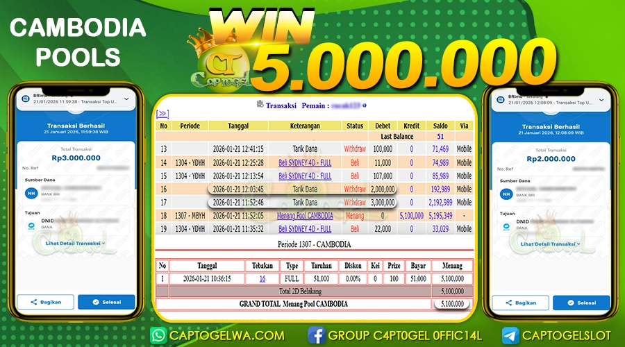 CAPTOGEL – Selamat Kepada Pemenang User ID: m3***d dalam permainan CAMBODIA POOLS sebesar Rp 5.000.000 05 JANUARI 2026 – bermain di situs game online terpercaya […]