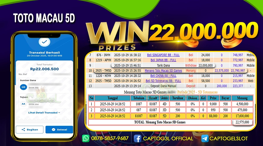 CAPTOGEL – Selamat Kepada Pemenang User ID: nos*** dalam permainan TOTO MACAU 5D sebesar Rp 22.000.000 29 OKTOBER 2025 – bermain di situs game online […]