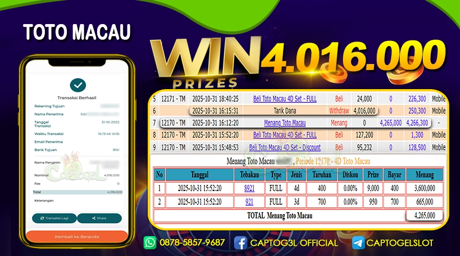 Read moreCAPTOGEL- JP TOTO MACAU 4 Juta 31 OKTOBER 2025