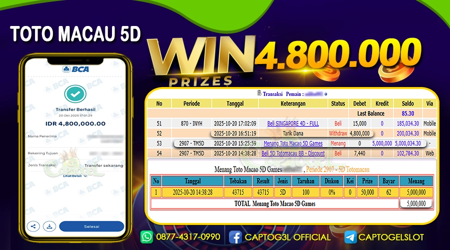 CAPTOGEL- JP TOTO MACAU 5D 5 Juta 27 OKTOBER 2025