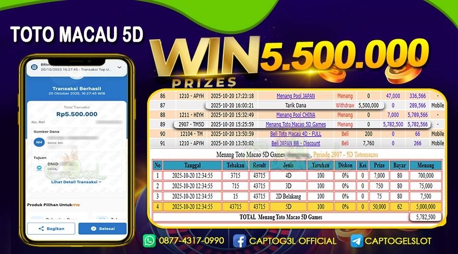 CAPTOGEL – Selamat Kepada Pemenang User ID: uce*** dalam permainan TOTO MACAU 5D sebesar Rp 5.500.000 20 OKTOBER 2025 – bermain di situs game online […]