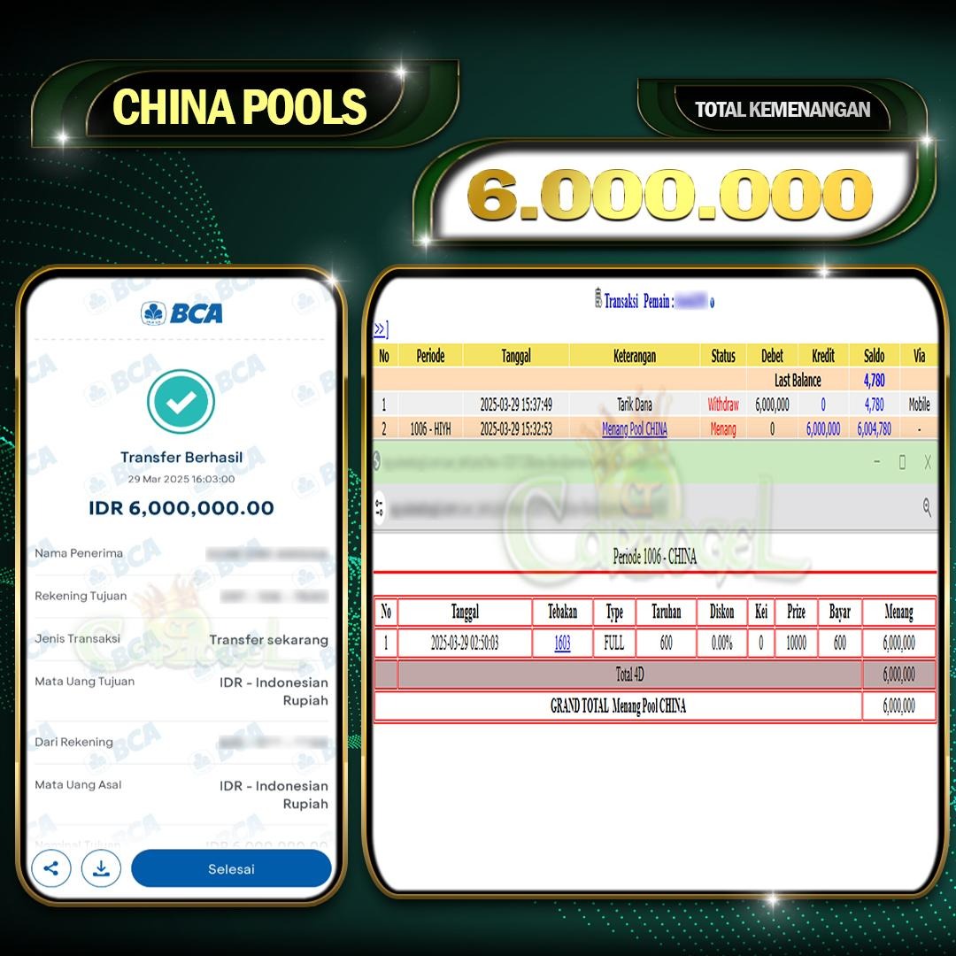 CAPTOGEL – Selamat Kepada Pemenang User ID: dwi*** CHINA POOLS 6.000.000 Juta 29 Maret 2025 – bermain di situs game online terpercaya yang telah terbukti dengan […]