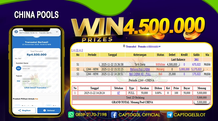 CAPTOGEL – Selamat Kepada Pemenang User ID: n4s*** dalam permainan CHINA POOLS sebesar Rp 4.500.000 22 NOVEMBER 2025 – bermain di situs game online terpercaya […]