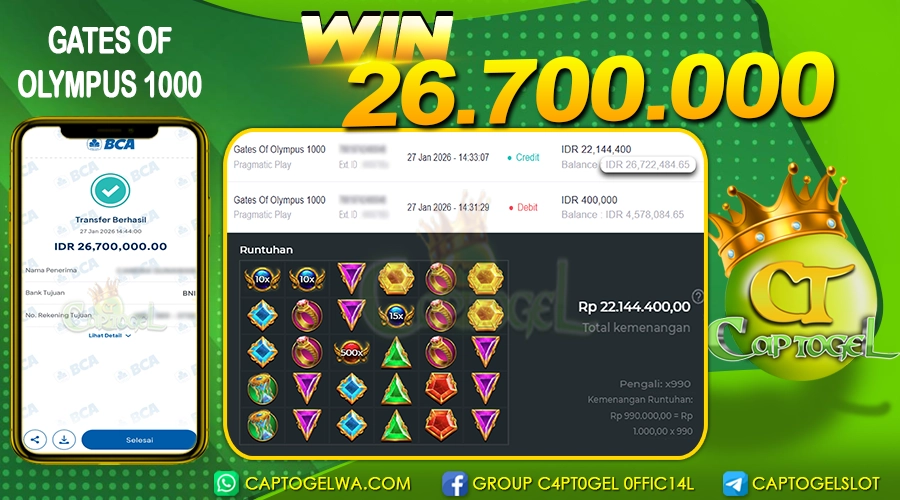 Read moreCAPTOGEL- JP GATES OF OLYMPUS 1000 26 Juta 27 JANUARI 2026