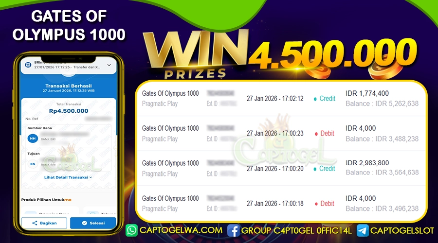 Read moreCAPTOGEL- JP GATES OF OLYMPUS 1000 4 Juta 27 JANUARI 2026