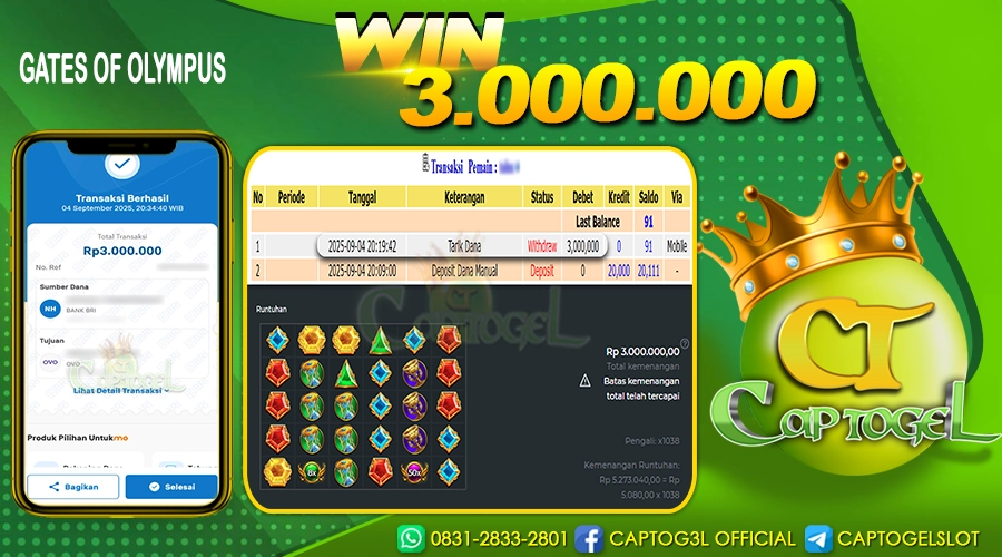 Read moreCAPTOGEL- JP GATES OF OLYMPUS 3 Juta 02 SEPTEMBER 2025