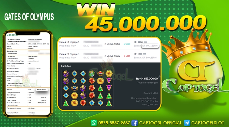 Read moreCAPTOGEL- JP GATES OF OLYMPUS 45 Juta 27 OKTOBER 2025