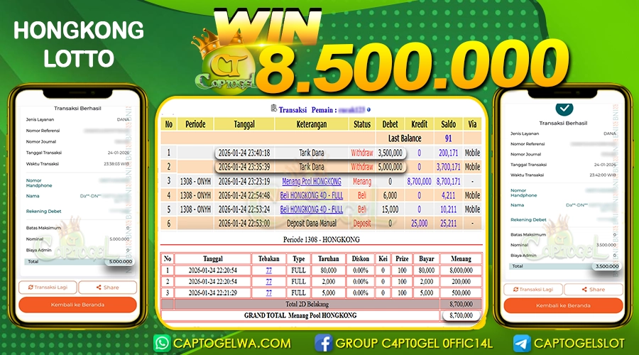 CAPTOGEL – Selamat Kepada Pemenang User ID: sa***c dalam permainan HONGKONG LOTTO sebesar Rp 8.500.000 24 JANUARI 2026 – bermain di situs game online terpercaya […]