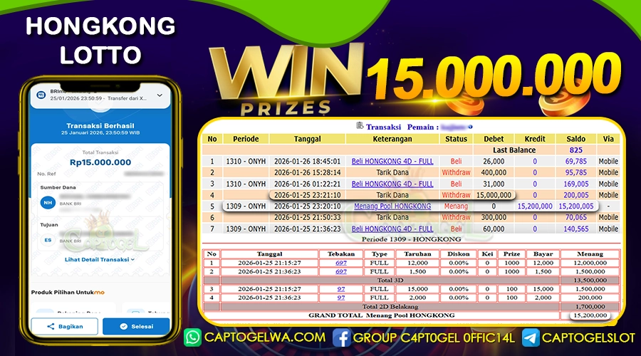 CAPTOGEL – Selamat Kepada Pemenang User ID: 3r***s dalam permainan HONGKONG LOTTO sebesar Rp 15.000.000 25 JANUARI 2026 – bermain di situs game online terpercaya […]