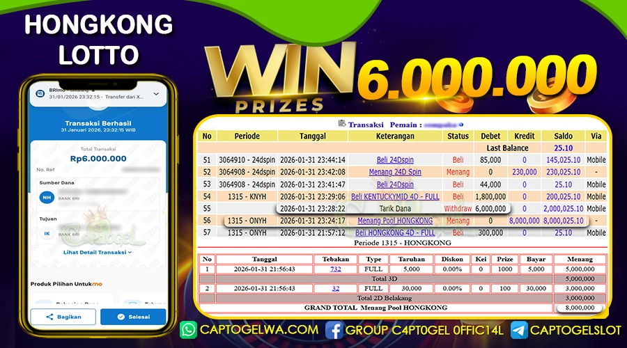 CAPTOGEL – Selamat Kepada Pemenang User ID: ai***p dalam permainan HONGKONG LOTTO sebesar Rp 6.000.000 31 JANUARI 2026 – bermain di situs game online terpercaya […]