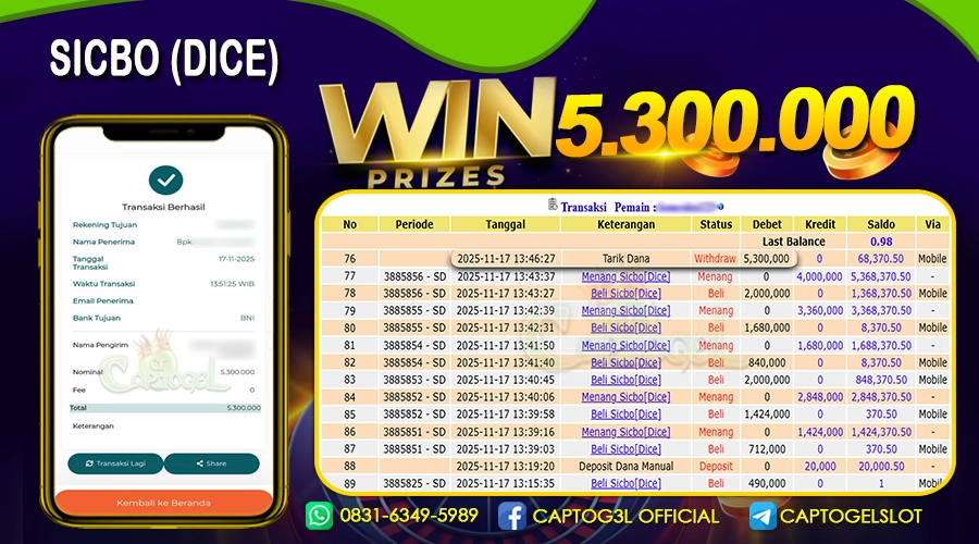 CAPTOGEL – Selamat Kepada Pemenang User ID: 0be*** dalam permainan SICBO DICE sebesar Rp 5.300.000 17 NOVEMBER 2025 – bermain di situs game online terpercaya […]
