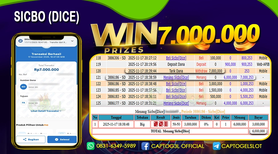 Read moreCAPTOGEL- JP SICBO DICE 7 Juta 17 NOVEMBER 2025