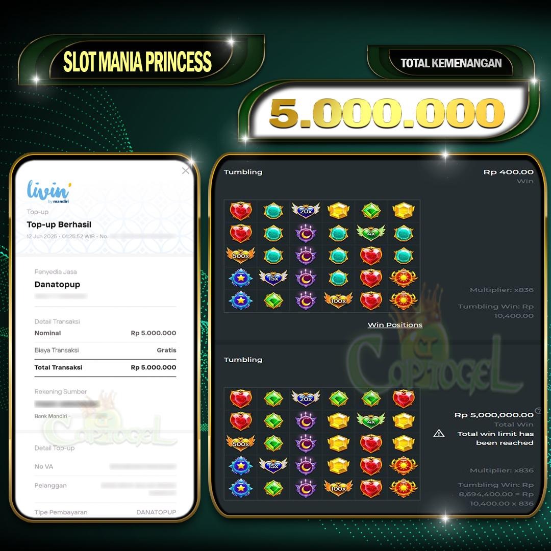 CAPTOGEL- JP SLOT MANIA PRINCESS 5 Juta 12 JUNI 2025
