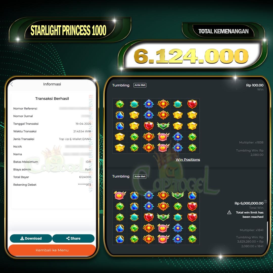 Read moreCAPTOGEL- JP STARLIGHT PRINCESS 1000 6 Juta 19 April 2025