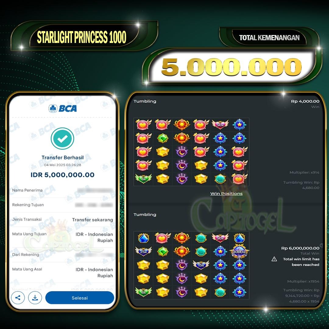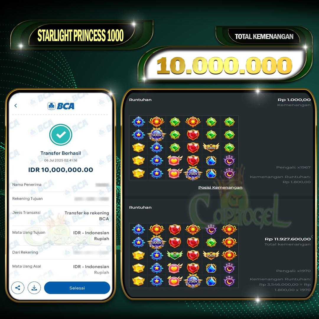 Read moreCAPTOGEL- JP STARLIGHT PRINCESS 1000 10 Juta 06 JULY 2025