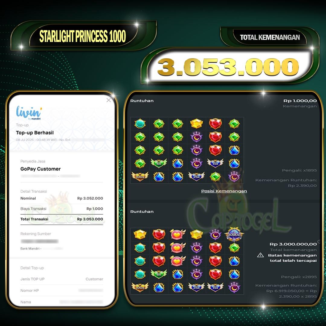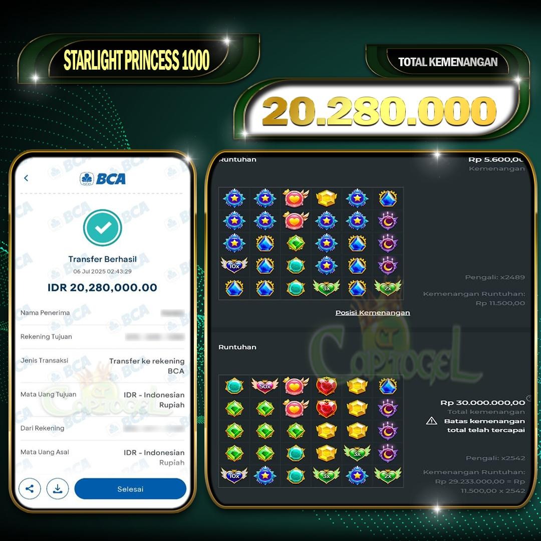 Read moreCAPTOGEL- JP STARLIGHT PRINCESS 1000 20 Juta 06 JULY 2025
