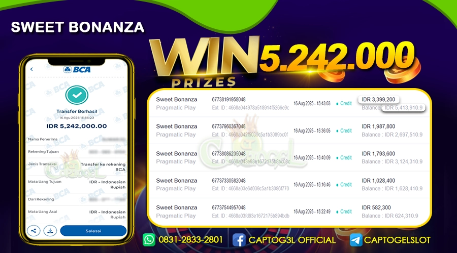 CAPTOGEL- JP SWEET BONANZA 5 Juta 16 AGUSTUS 2025