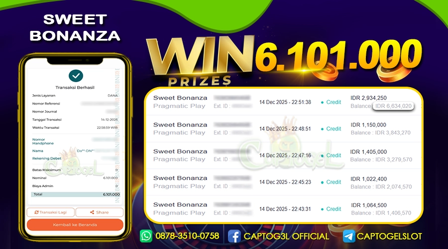 CAPTOGEL – Selamat Kepada Pemenang User ID: ewo*** dalam permainan SWEET BONANZA sebesar Rp 6.100.000 14 DESEMBER 2025 – bermain di situs game online terpercaya yang […]