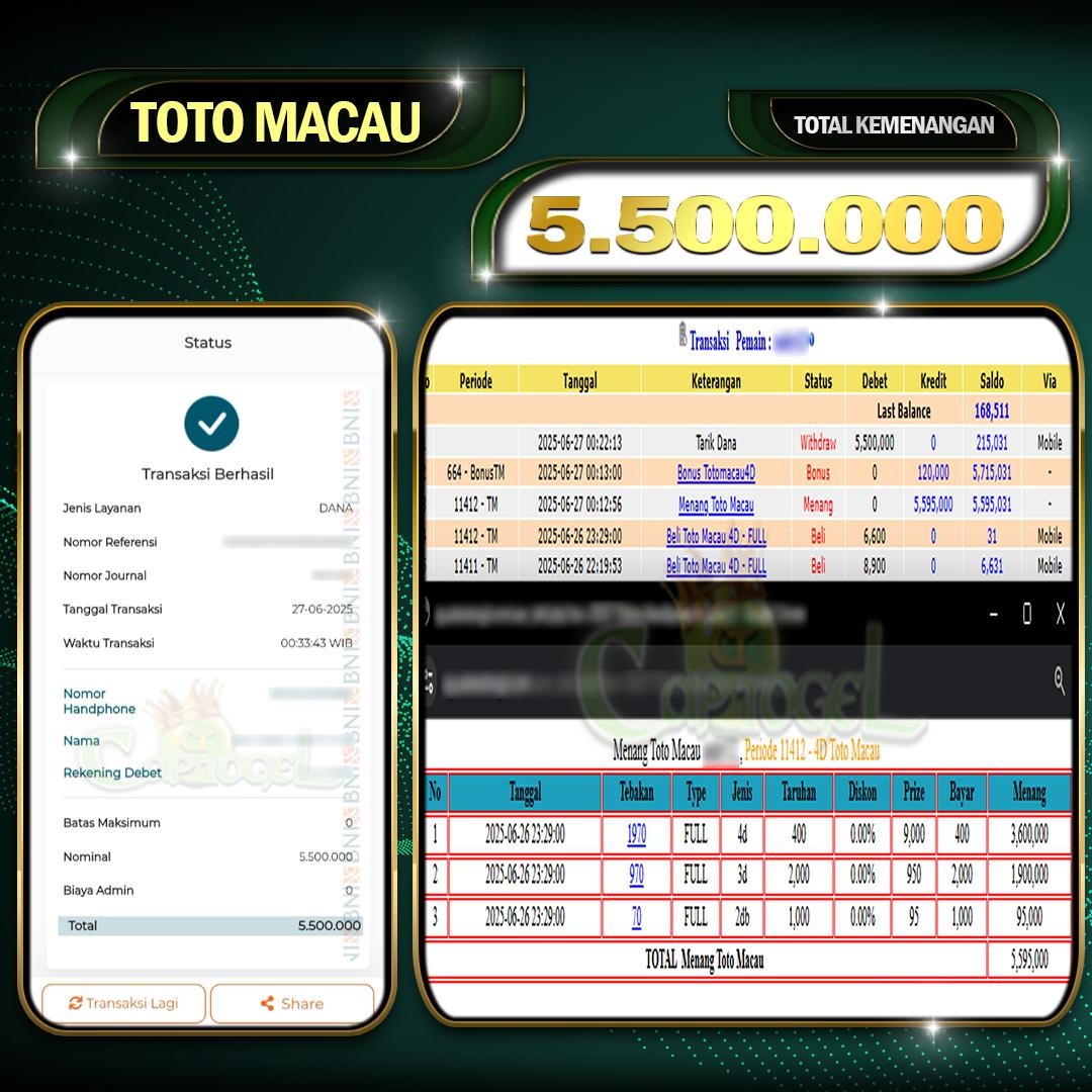 Read moreCAPTOGEL- JP TOTOMACAU 4D 5 Juta 27 JUNI 2025