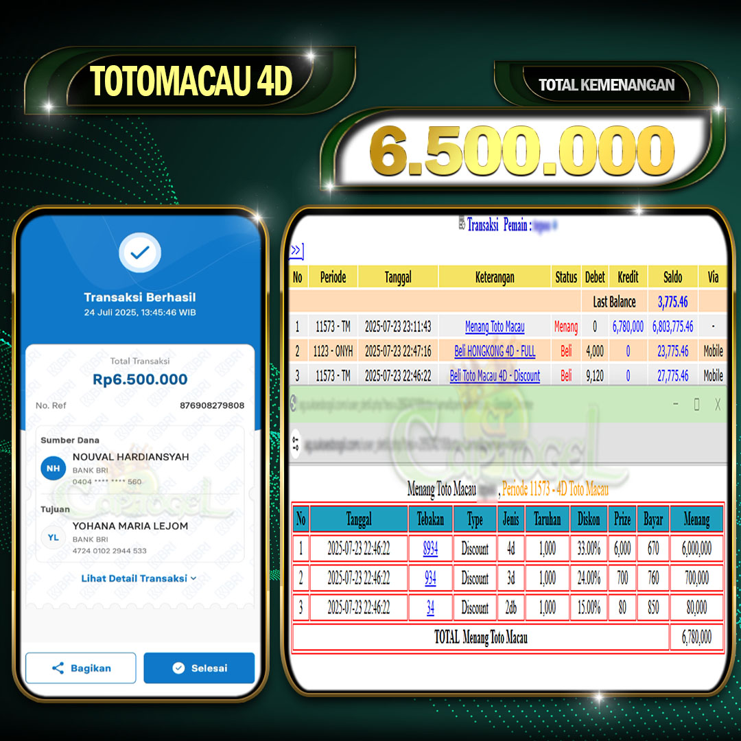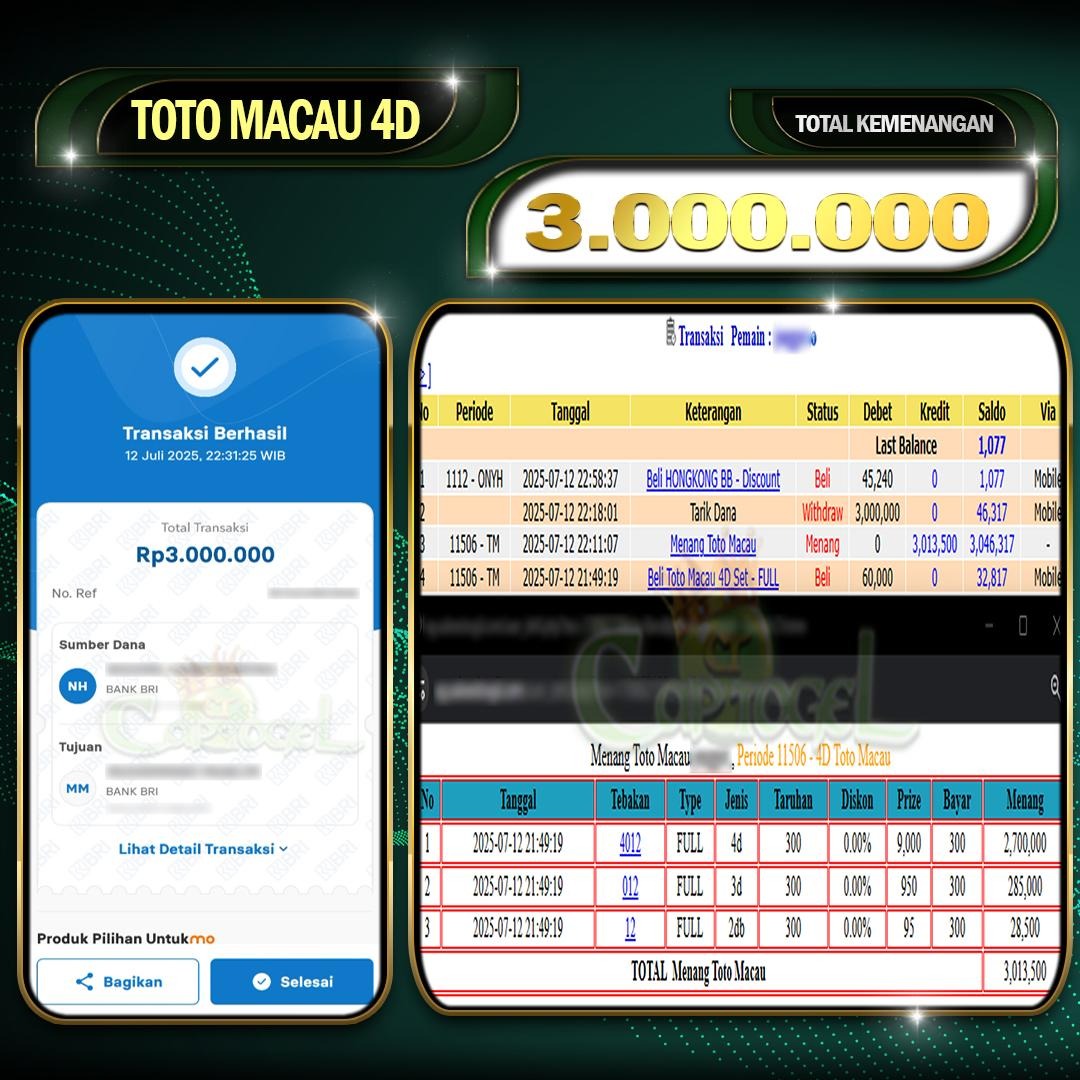 Read moreCAPTOGEL- JP TOTOMACAU 4D 3 Juta 12 JULY 2025