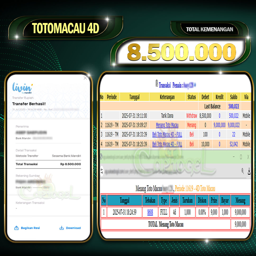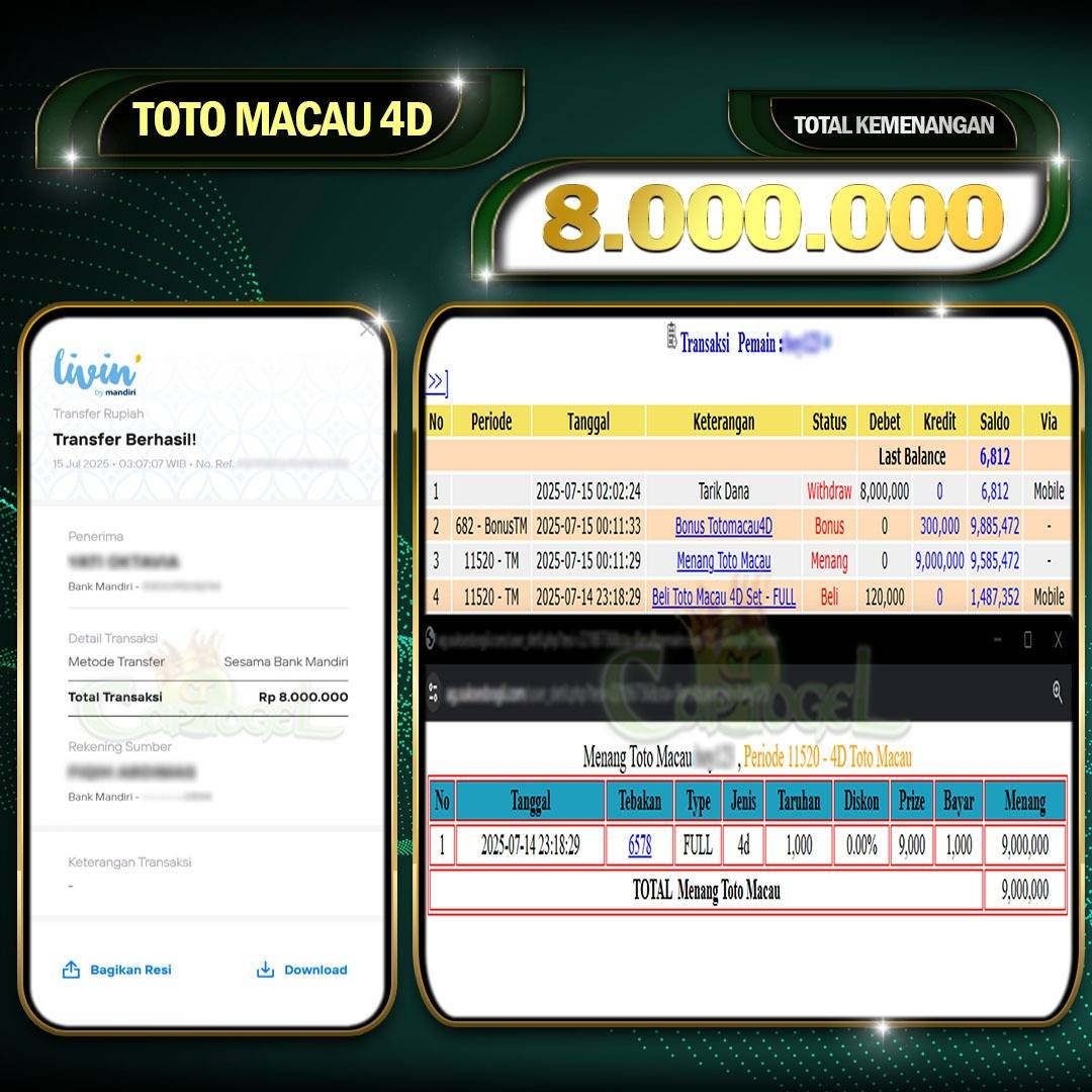 Read moreCAPTOGEL- JP TOTOMACAU 4D 8 Juta 15 JULY 2025