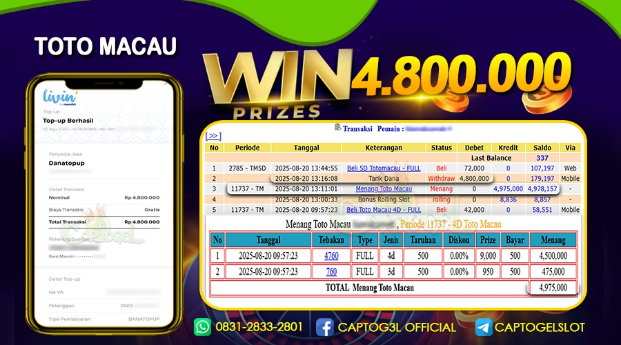 CAPTOGEL- JP TOTOMACAU 4D 4 Juta 20 AGUSTUS 2025