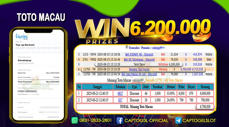 CAPTOGEL – Selamat Kepada Pemenang User ID: w4y*** dalam permainan TOTOMACAU 4D sebesar Rp 6.200.000 23 AGUSTUS 2025 – bermain di situs game online terpercaya […]