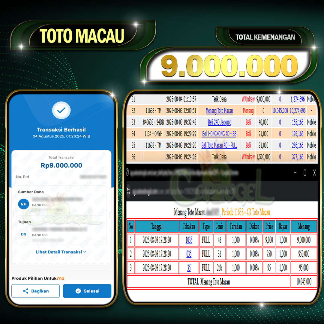 CAPTOGEL – Selamat Kepada Pemenang User ID: wir*** dalam permainan TOTOMACAU 4D sebesar Rp 9.000.000 04 AGUSTUS 2025 – bermain di situs game online terpercaya […]