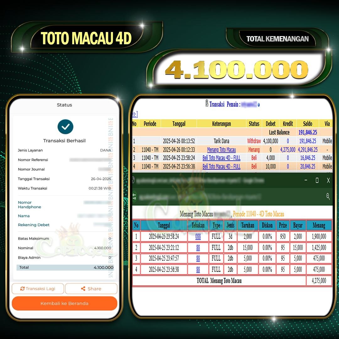 Read moreCAPTOGEL- JP TOTOMACAU 4D 4 Juta 26 April 2025