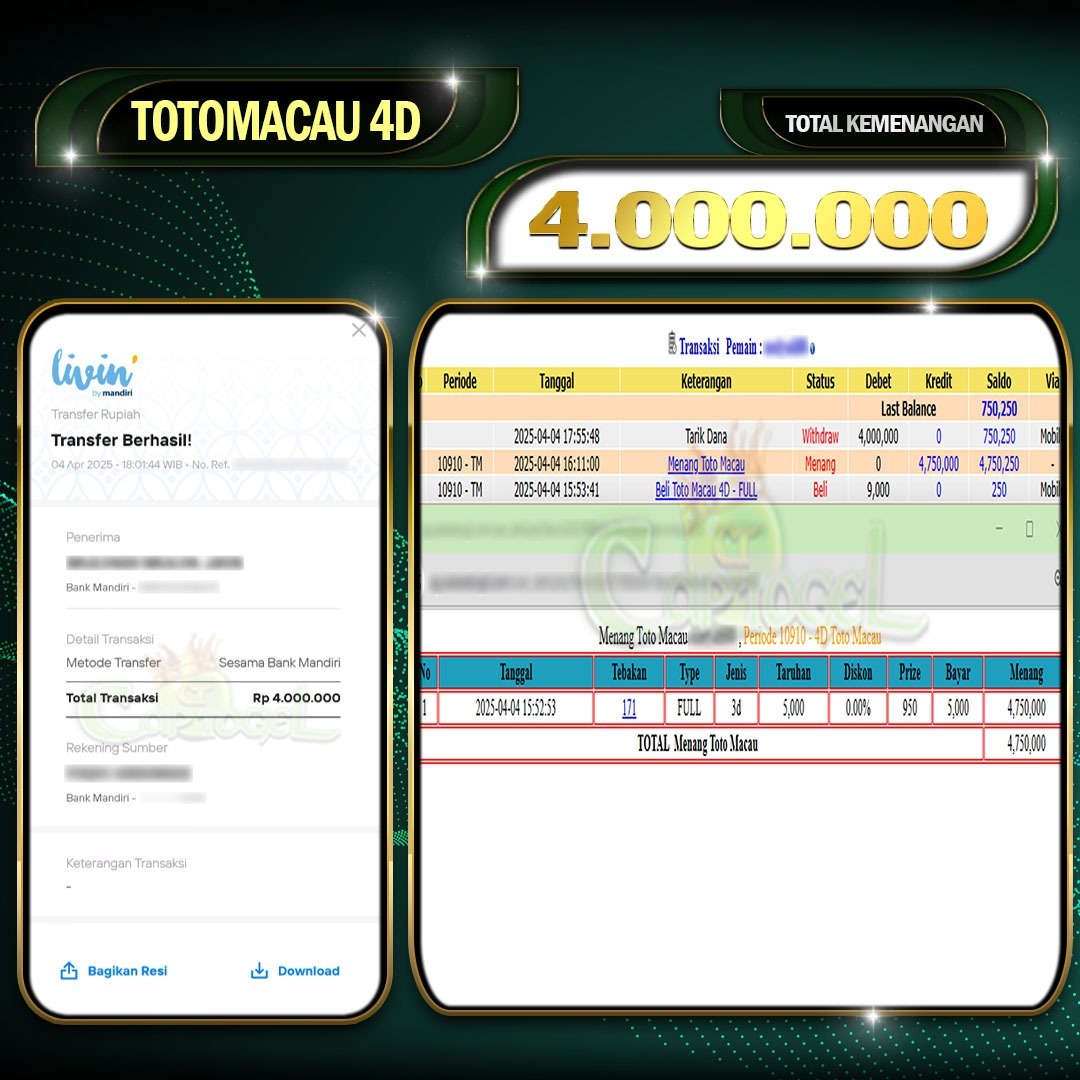 Read moreCAPTOGEL- JP TOTOMACAU 4D 4 Juta 04 April 2025