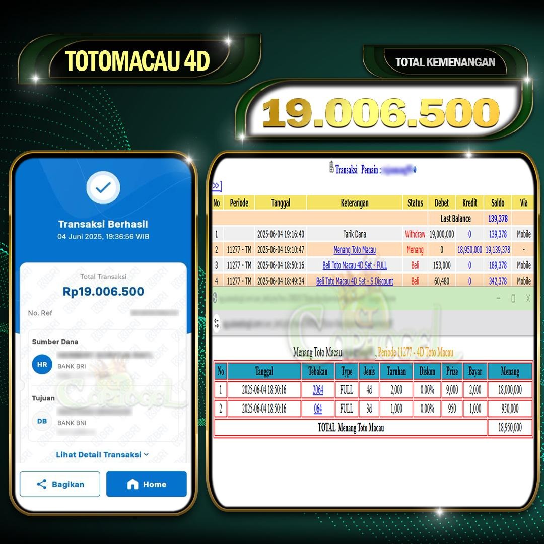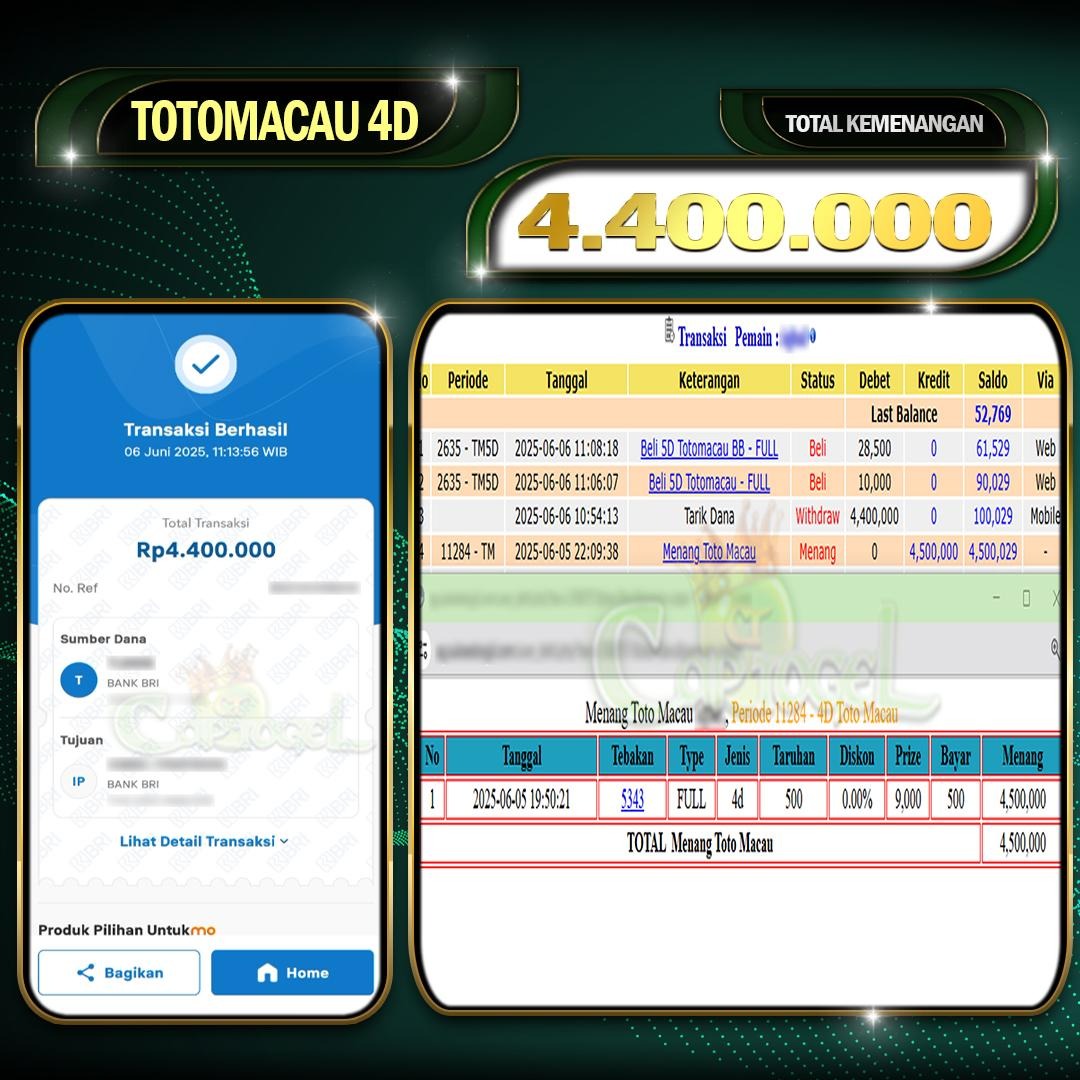 CAPTOGEL – Selamat Kepada Pemenang User ID: vue*** TOTOMACAU 4D 19.000.000 Juta 04 JUNI 2025 – bermain di situs game online terpercaya yang telah terbukti dengan […]