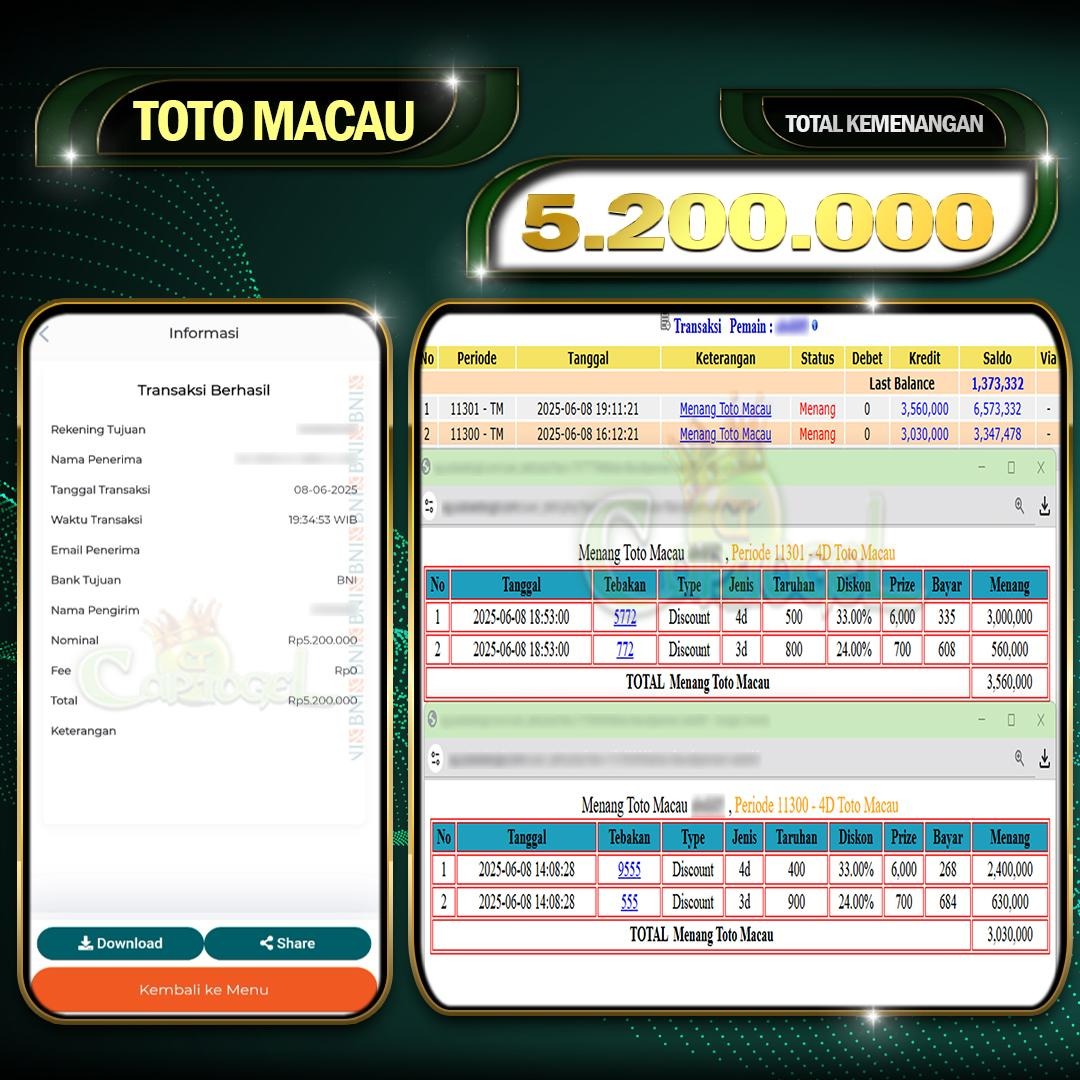 Read moreCAPTOGEL- JP TOTOMACAU 4D 5 Juta 26 MEI 2025