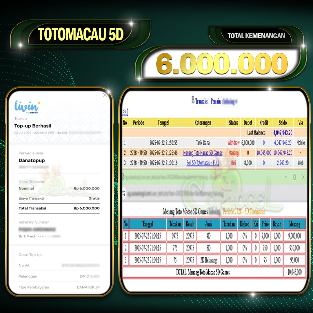 Read moreCAPTOGEL- JP TOTOMACAU 5D 6 Juta 22 JULY 2025