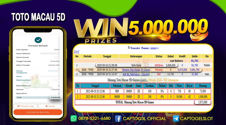 Read moreCAPTOGEL- JP TOTOMACAU 5D 5 Juta 10 SEPTEMBER 2025